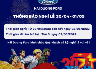 Đại lý Ford Hải Dương thông báo lịch nghỉ lễ 30/4 – 1/5/2022 Ford Hải Dương kính chúc Quý khách hàng và Quý đối tác có một kỳ nghỉ vui vẻ và an toàn!
