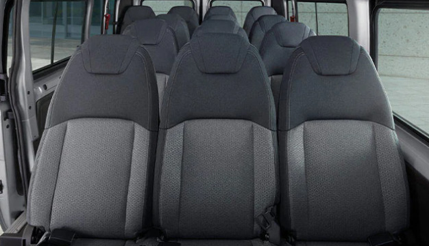 - Ford Transit mới với không gian rộng rãi và thoáng. Các hàng ghế ngồi được trang bị dây đai an toàn. Thiết kế tựa lưng và tựa đầu liền khối rất sang trọng. Có thể ngả từng ghế riêng biệt. Giúp hành khách thư giãn và thoải mái khi đi đường dài. Hàng ghế cuối có thể gập phần tựa lưng khi cần không gian chở nhiều đồ rất tiện dụng.